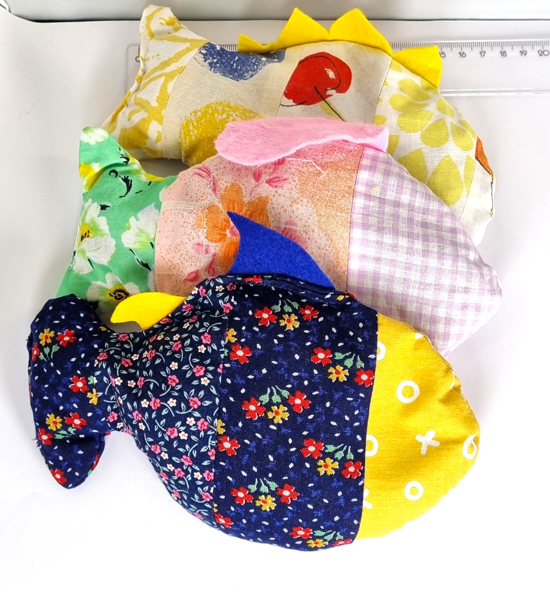 Eri värisistä kangastilkuista valmistettuja. sisältää herneitä.